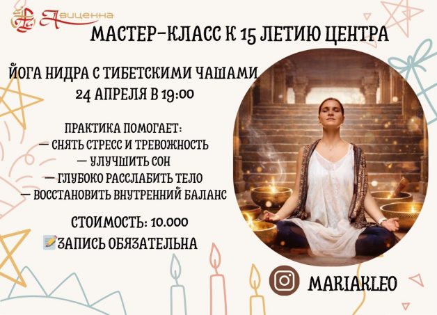 В пространстве нашего центра пройдёт глубокий расслабляющий сеанс — йога-нидра в сопровождении вибраций тибетских поющих чаш ✨